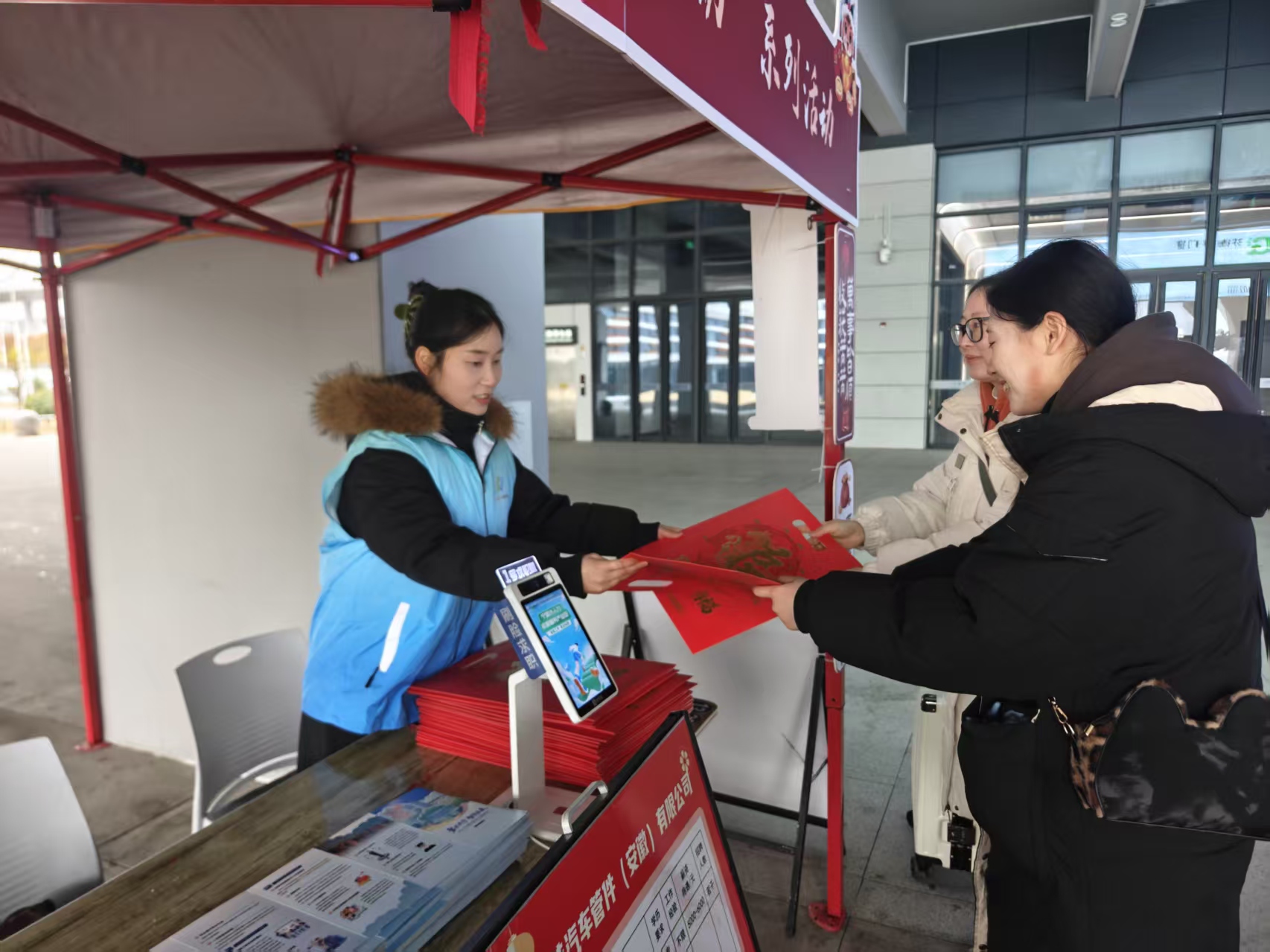 活动现场,红火的春联、喜庆的“就业红包”以及宁国市人才政策宣传手册被送到刚刚踏上故土的返乡人员手中,不仅传递着浓浓的年味和新春祝福,更蕴含着家乡殷切的期盼与诚挚的邀约。现场特别设置的“乐业在宁国”特色拍照打卡点,吸引了不少返乡青年驻足留念,成为分享喜悦、传递信息的生动窗口。