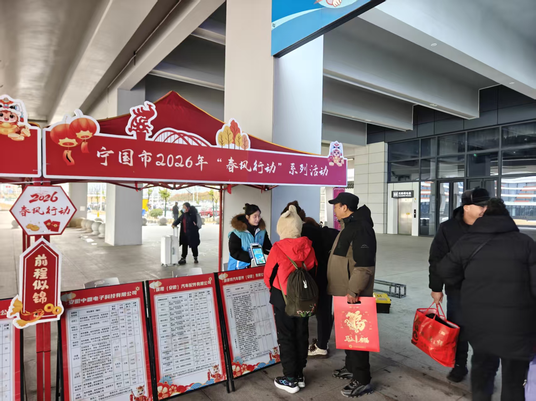年味渐浓,归心似箭。1月30日,宁国高铁南站出站口暖意融融。由宁国市人力资源和社会保障局主办、宁国市人力资源服务产业园承办的“春风暖三津·乐业在宁国”2026年宁国市春风行动系列活动高铁南站预热活动正式启动,旨在抓住春节期间外出务工人员集中返乡的契机,第一时间送上家乡的问候与机遇,吹响新年引才聚智、稳岗就业的“春风号角”。